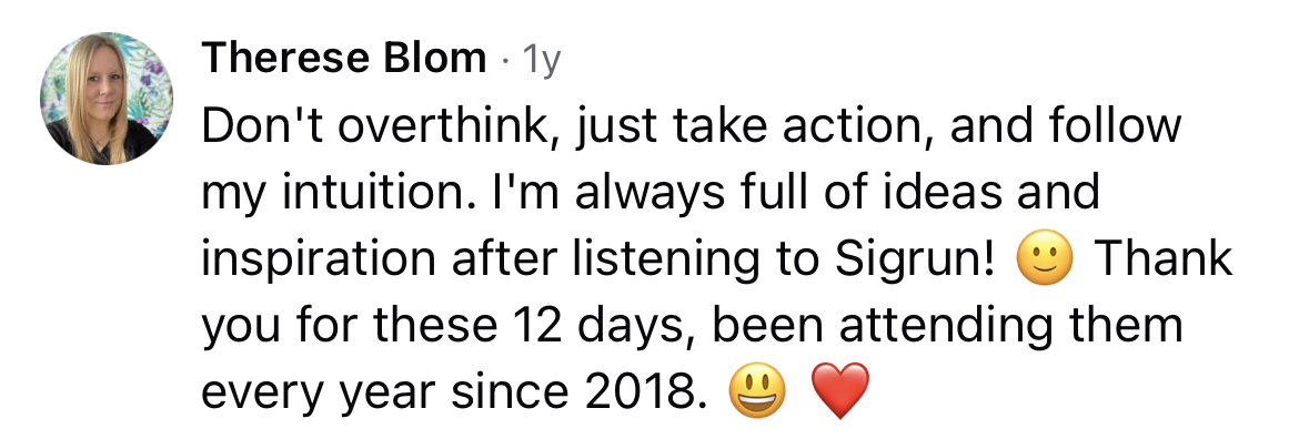I’m an award-winning business mentor, bestselling author, host of The Sigrun Show, and creator of 12 Days of Masterclasses®.