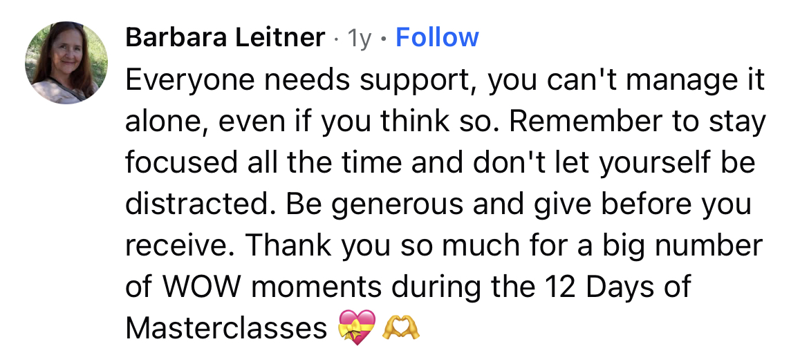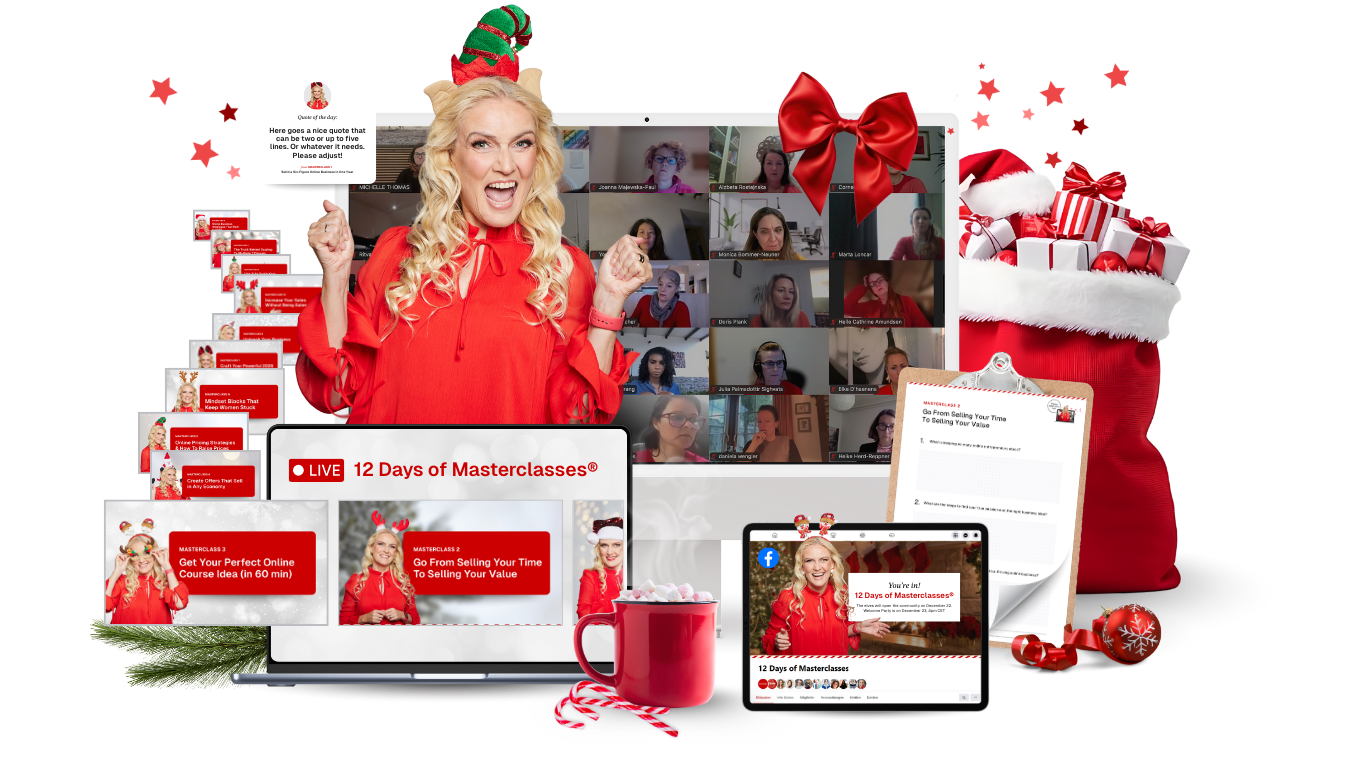 In 2015, I brought this tradition into my business through 12 Days of Masterclasses® and it’s now one of the longest-running free learning experiences for women entrepreneurs worldwide.