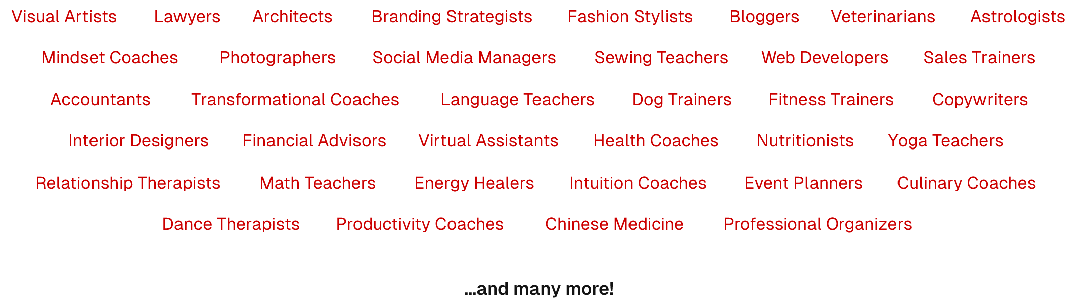 A growing email list of ideal clients excited to work with you – No more spaghetti marketing to build an audience.